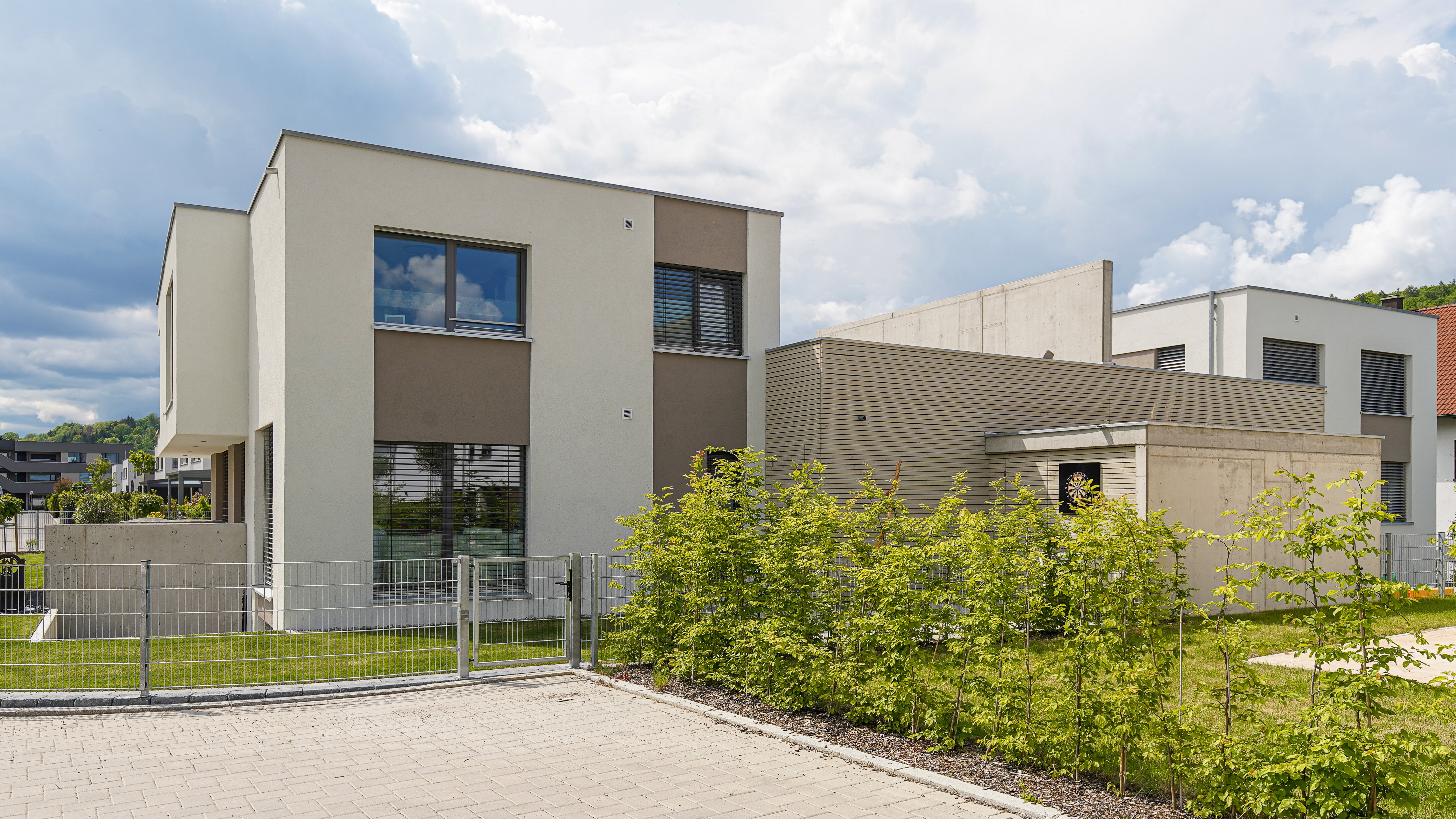 Wir bauen immer energetisch besser als der Gesetzgeber dies mit dem Gebäude- energiegesetz (GEG) fordert. Die Dämmhülle des Projektes erfüllt die Vorgaben der BEG-WG („Bundesförderung effiziente Gebäude - Wohngebäude“) für das Effizienzhaus 40. Mit der geplanten Heizungsanlage hat das Gebäude den Energiestandard „Effizienzhaus 40 EE“ erreicht.
