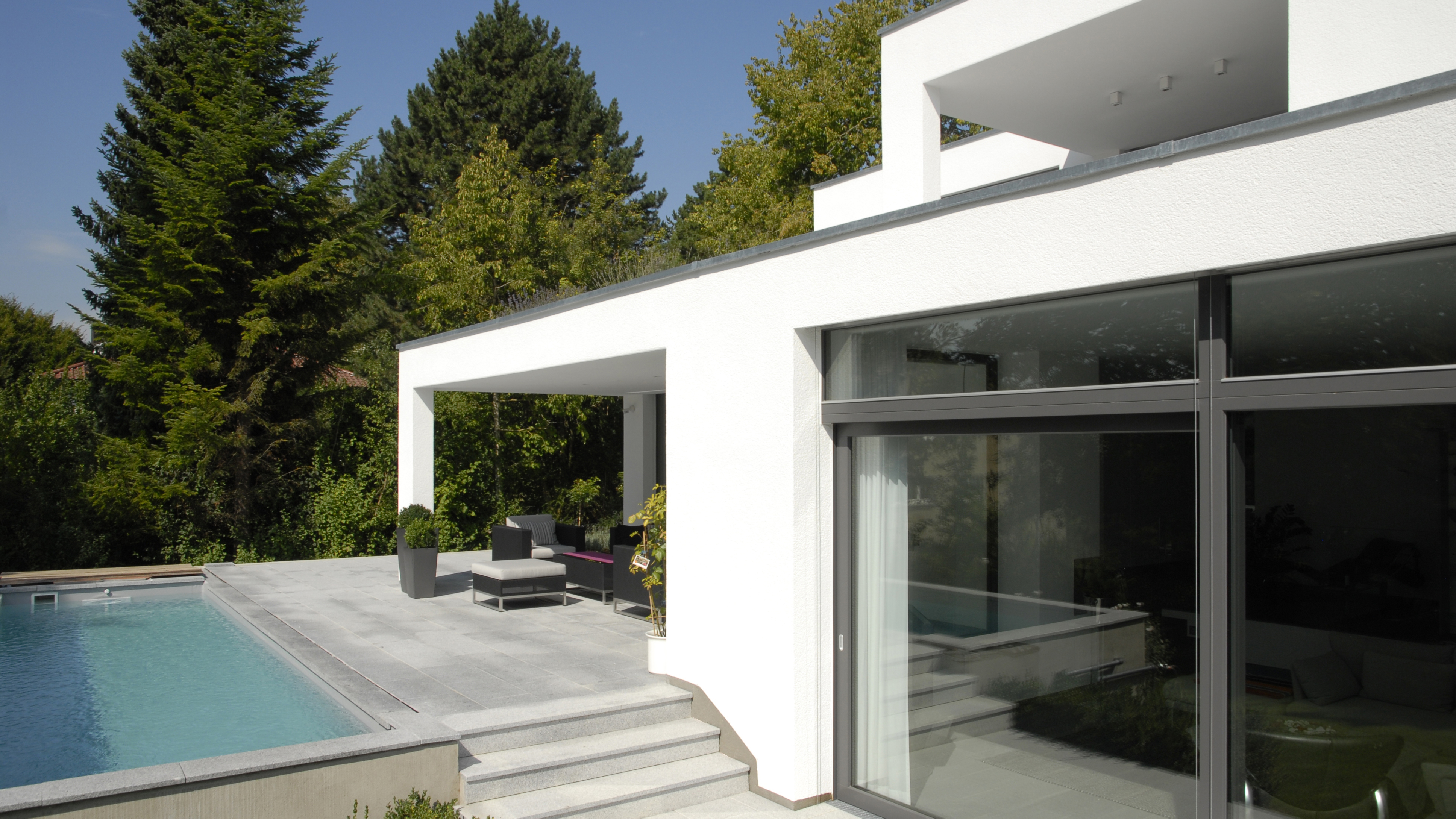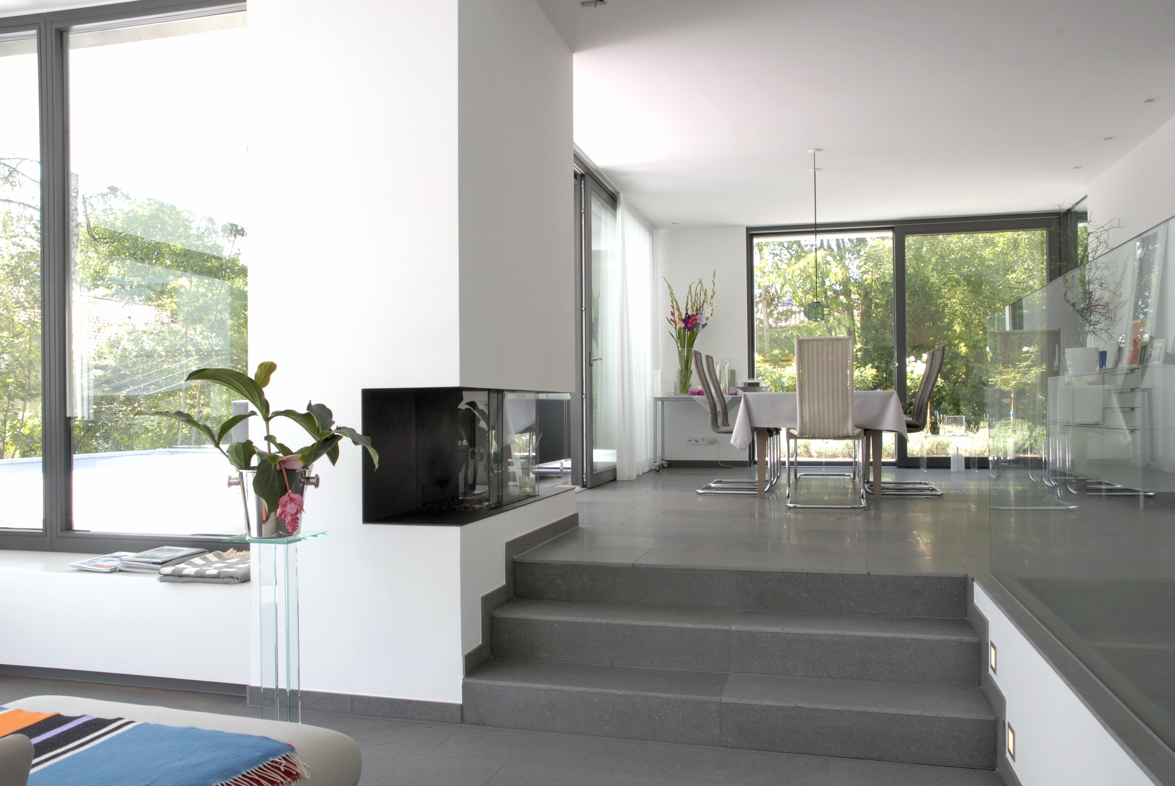 Passive Solarenergienutzung durch großzügige, hochwertige (3-fach) Verglasungen, die nach Süden und Westen ausgerichtet sind.