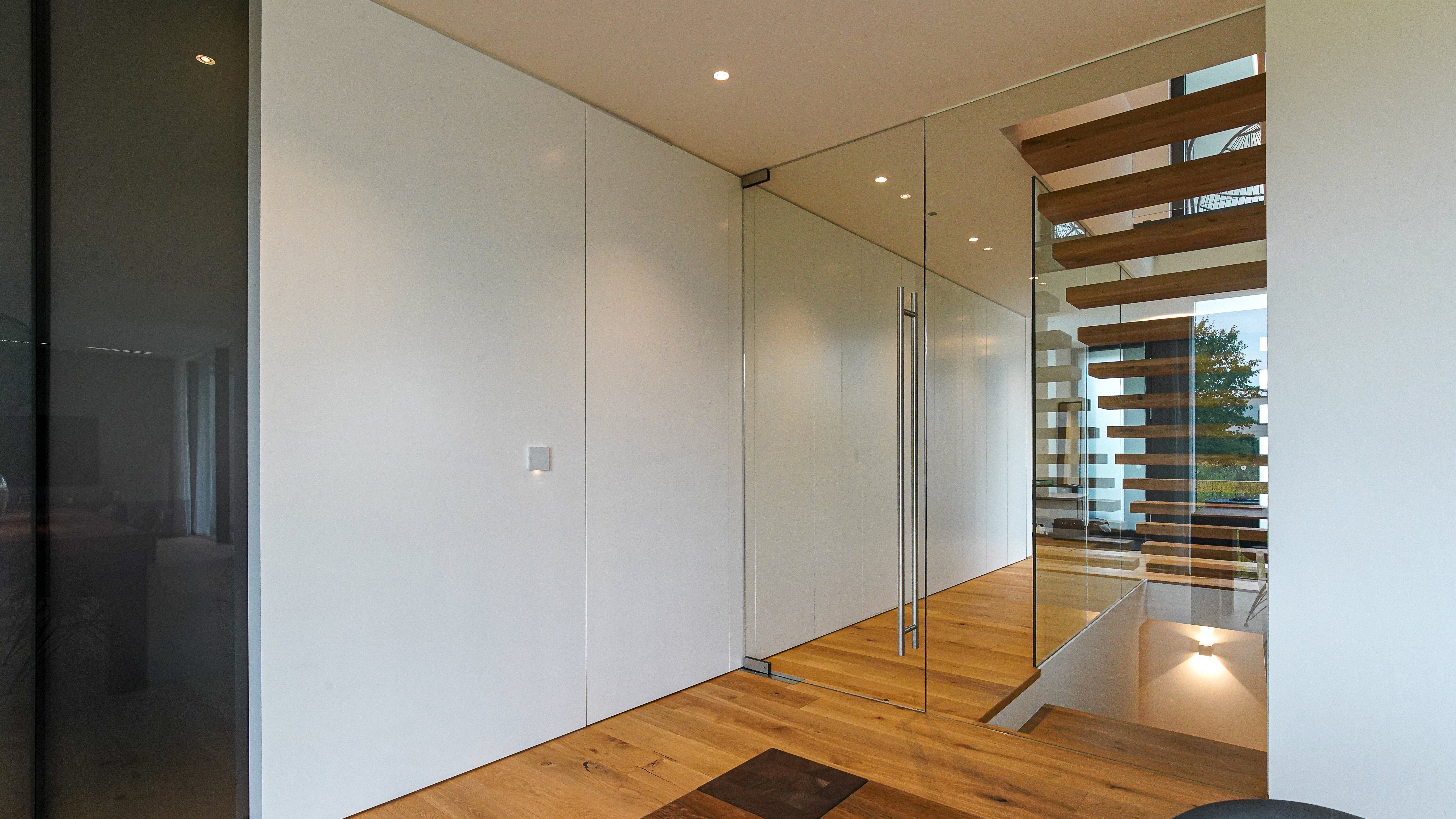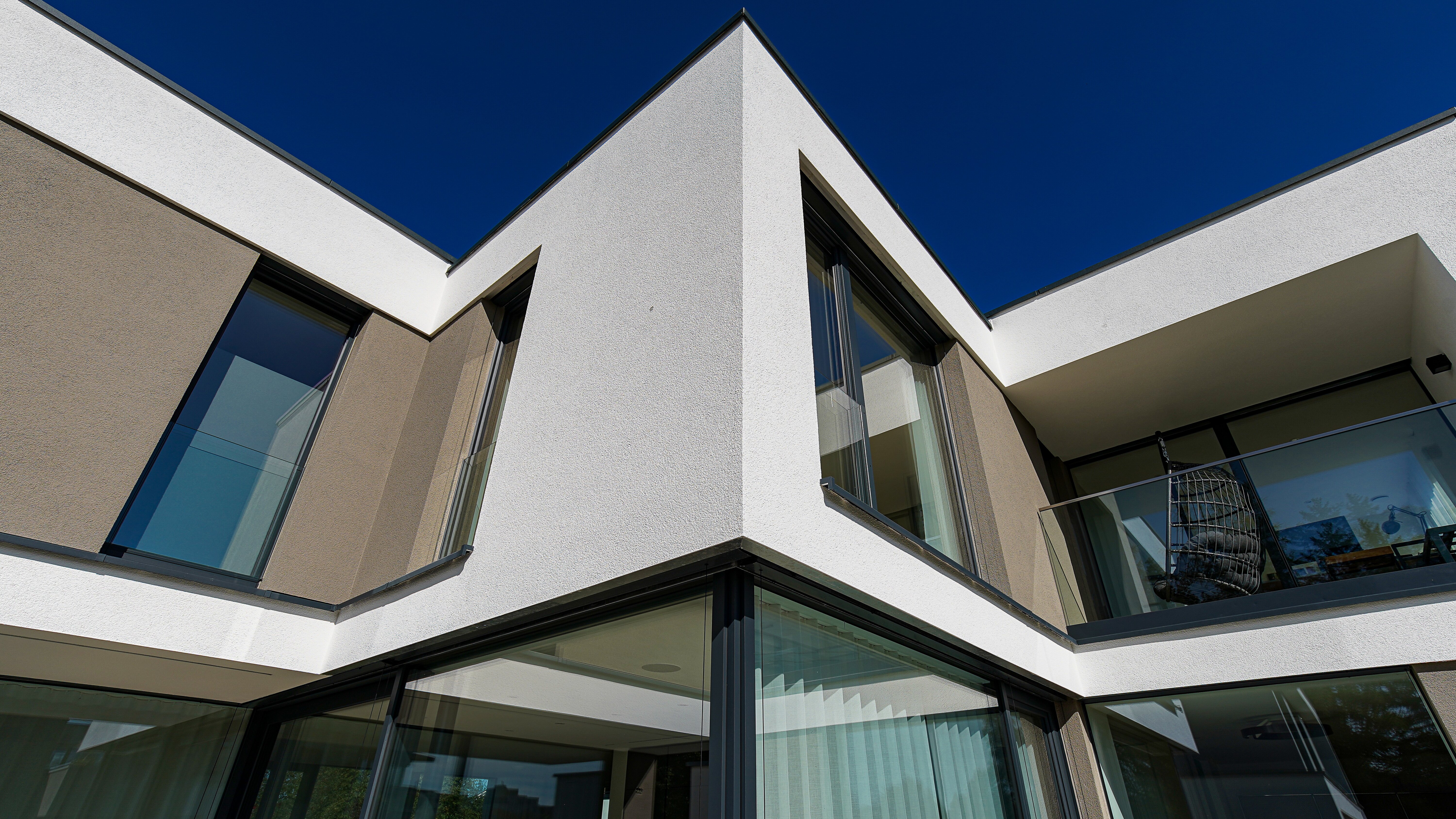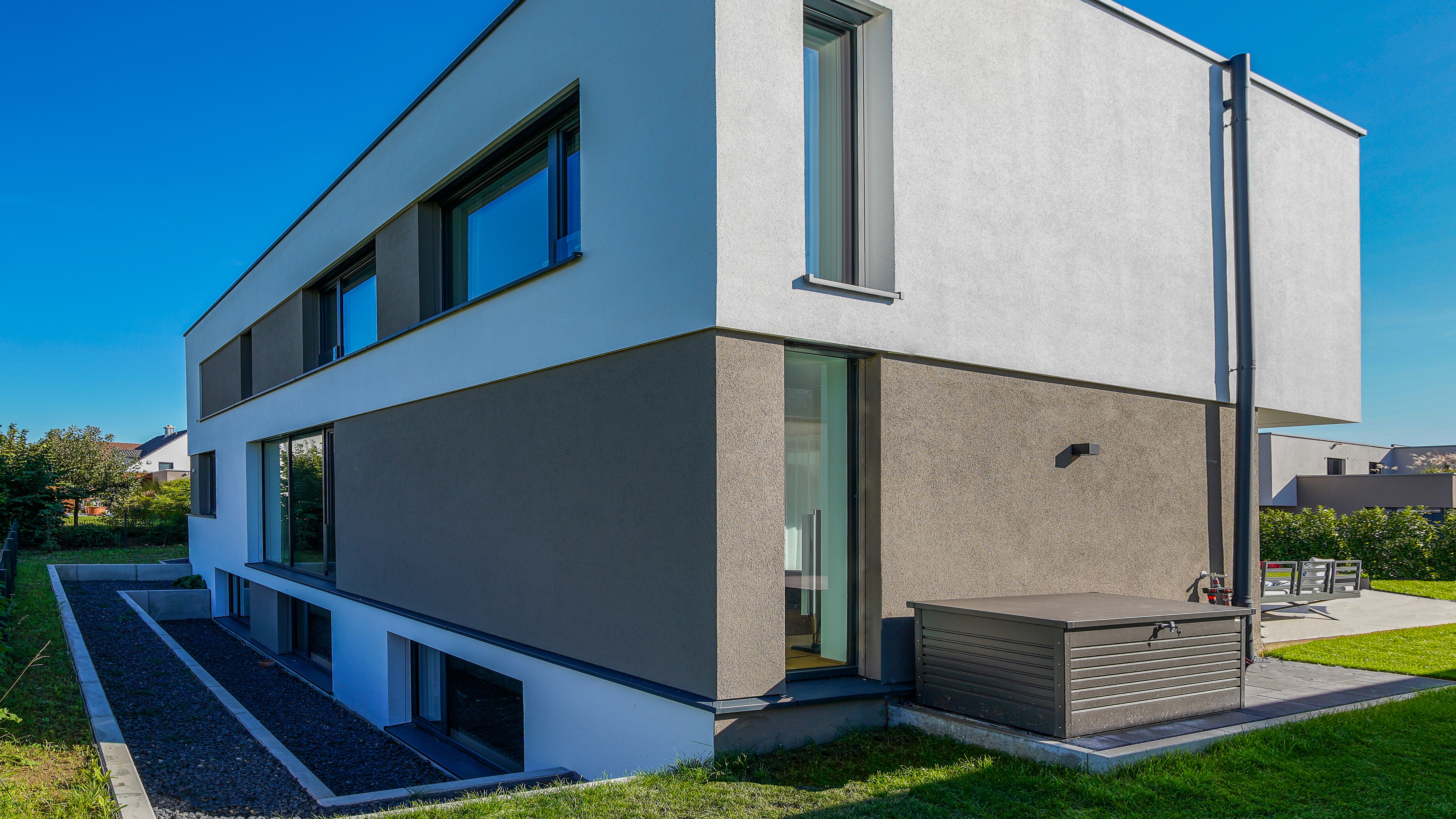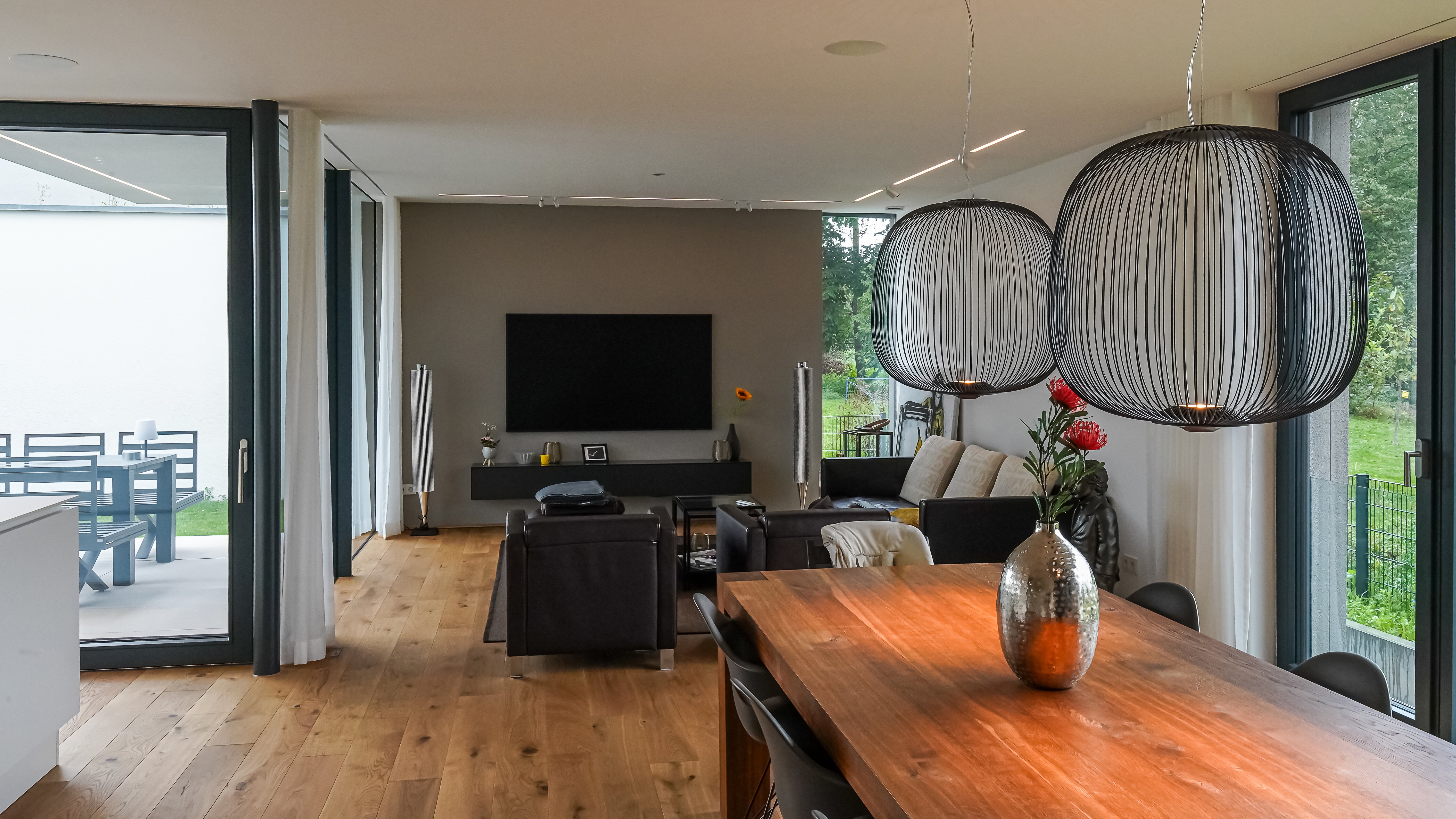 Passive Solarenergienutzung durch großzügige, hochwertige Dreifach-Verglasungen, die nach Süden und Westen ausgerichtet sind