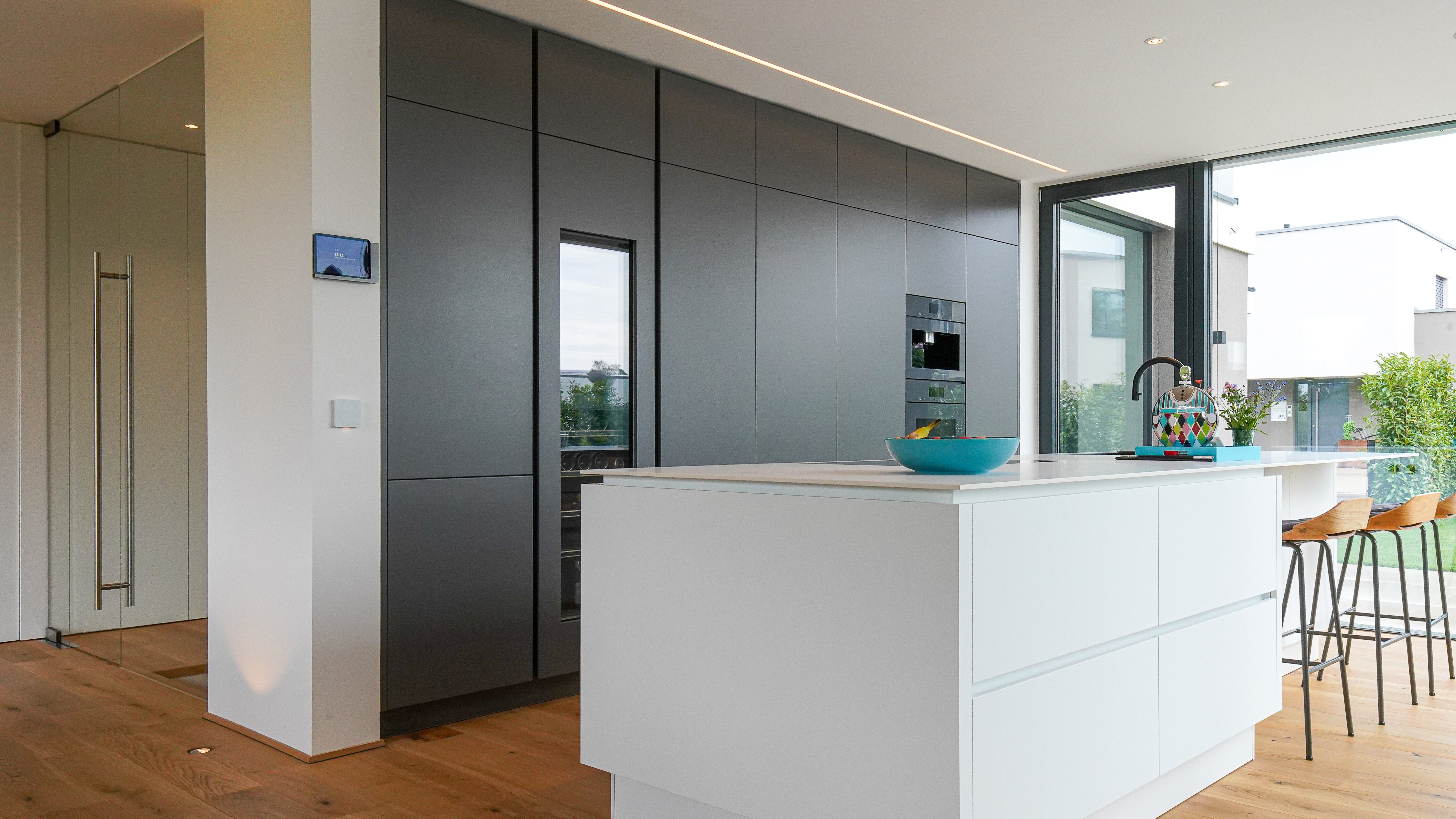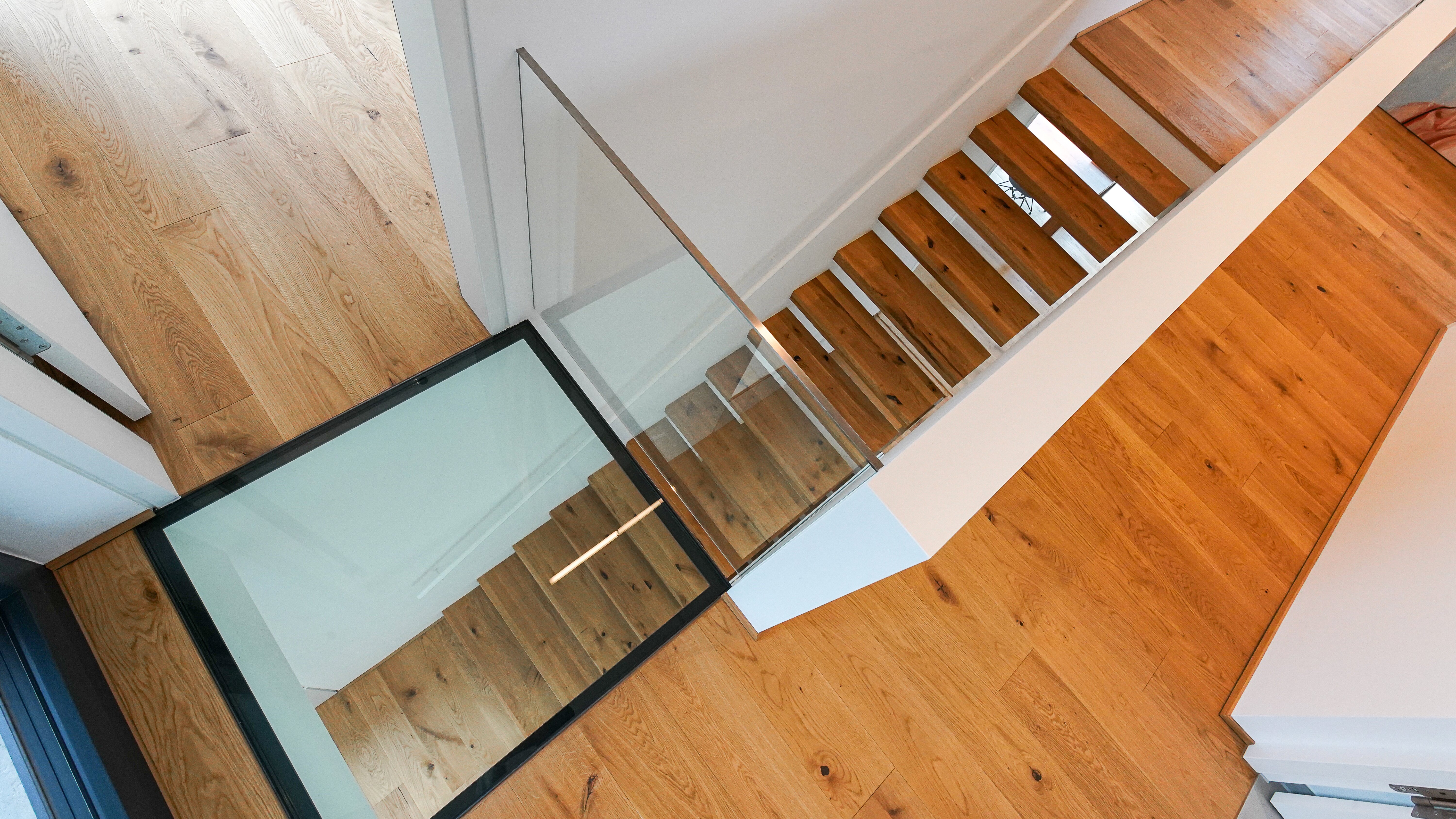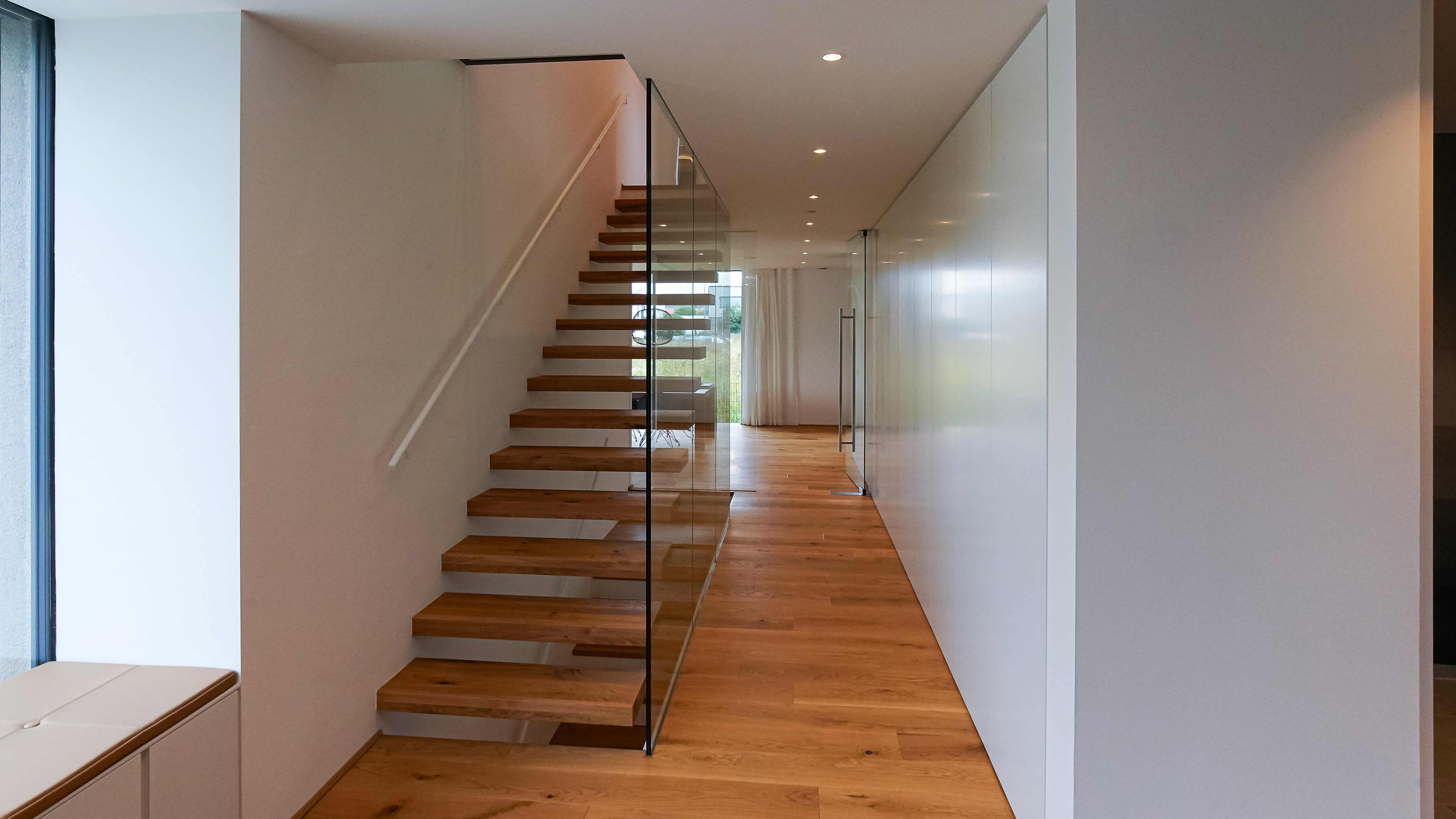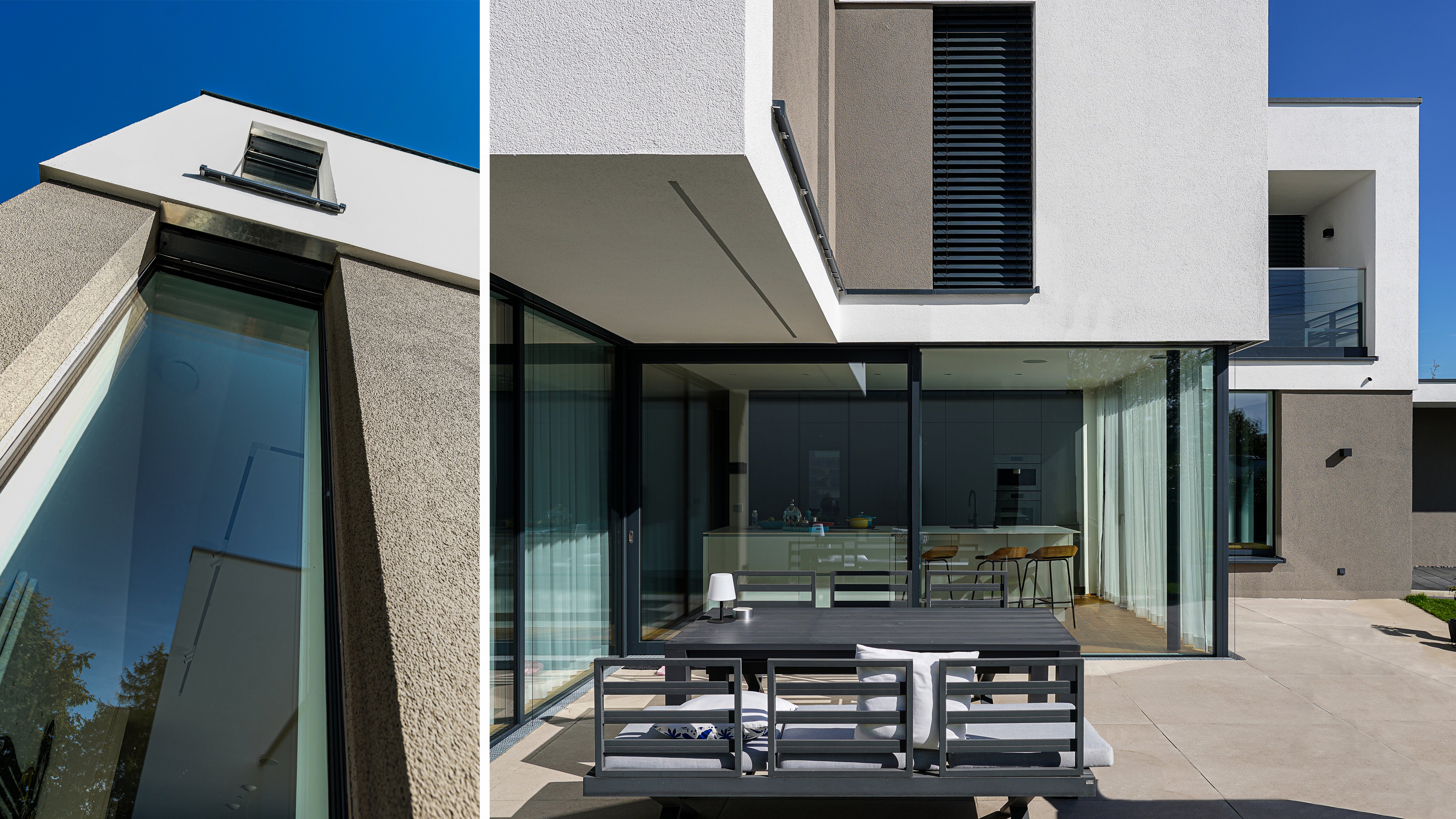 Passive Solarenergienutzung durch großzügige, hochwertige Dreifach-Verglasungen, die nach Süden und Westen ausgerichtet sind
