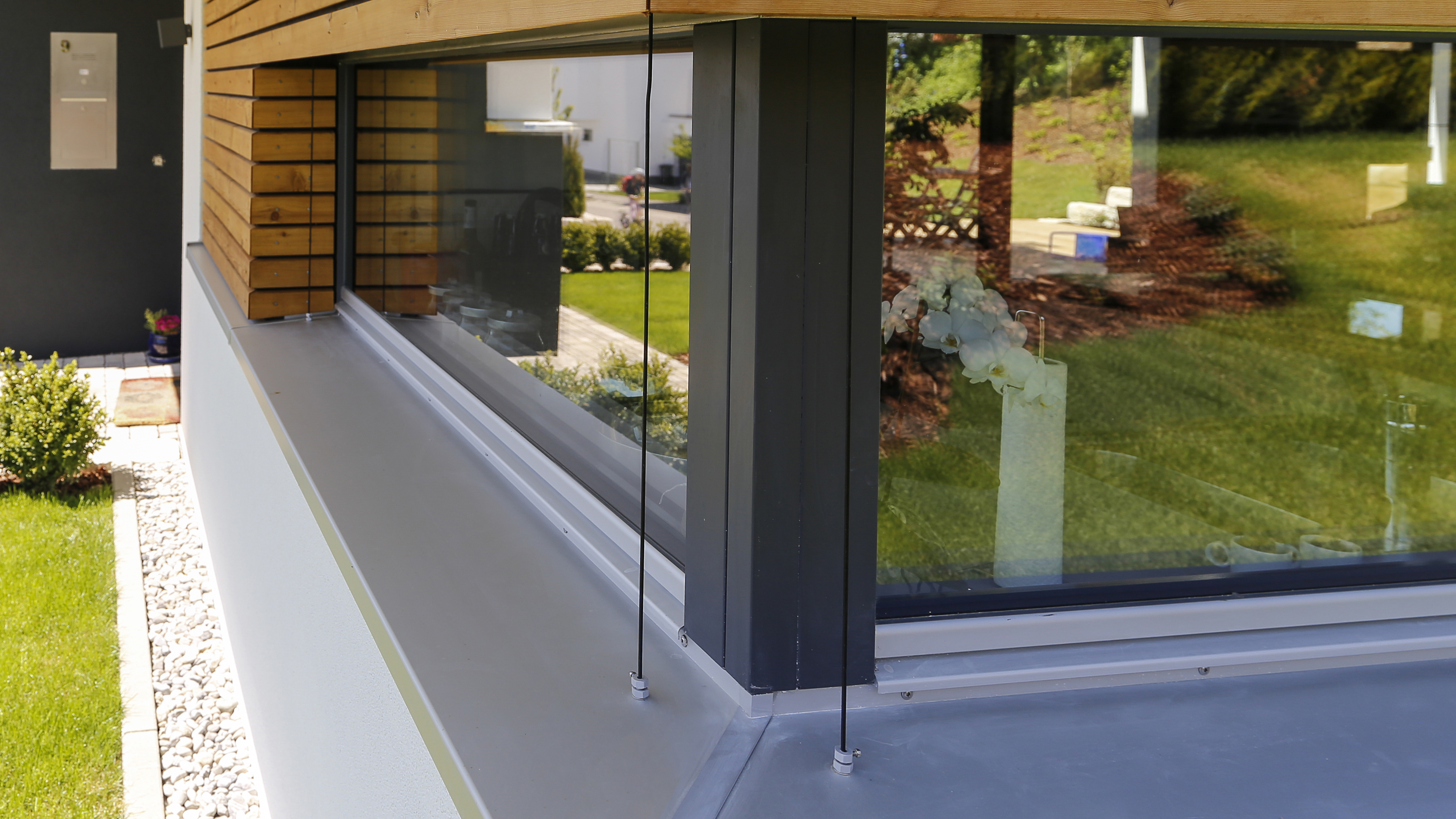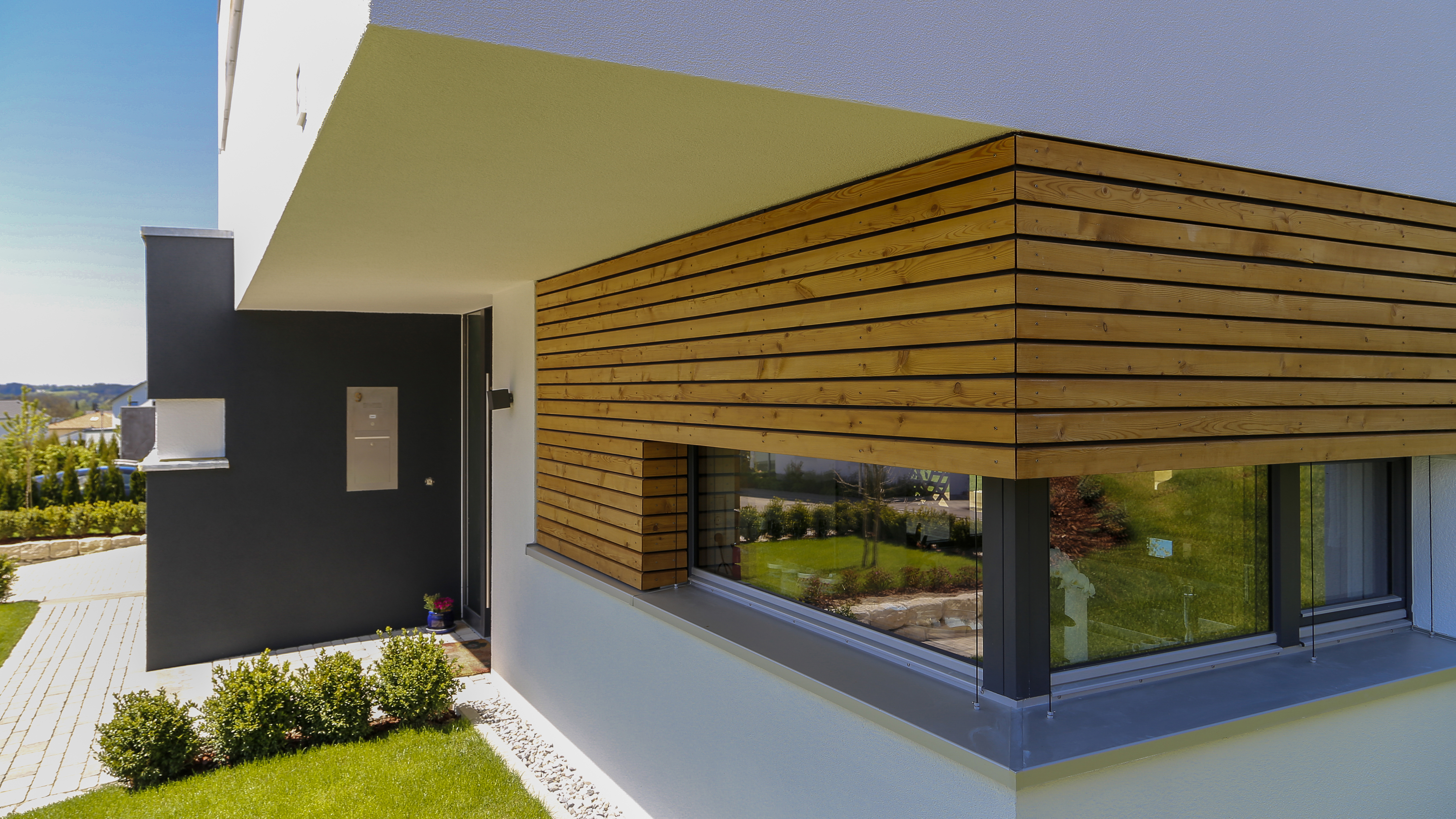 Passive Solarenergienutzung durch großzügige, hochwertige Dreifach-Verglasungen, die nach Süden und Westen ausgerichtet sind