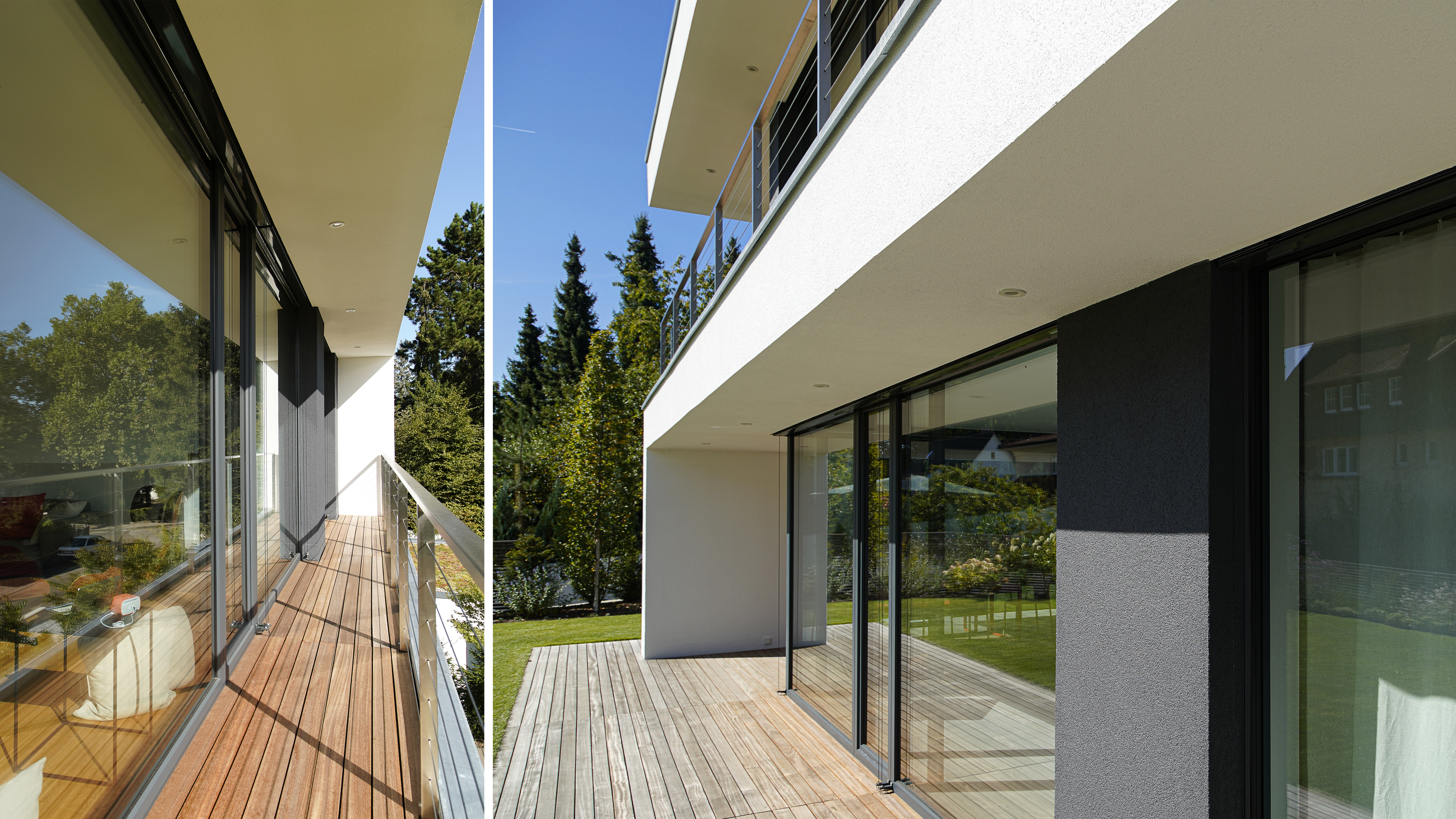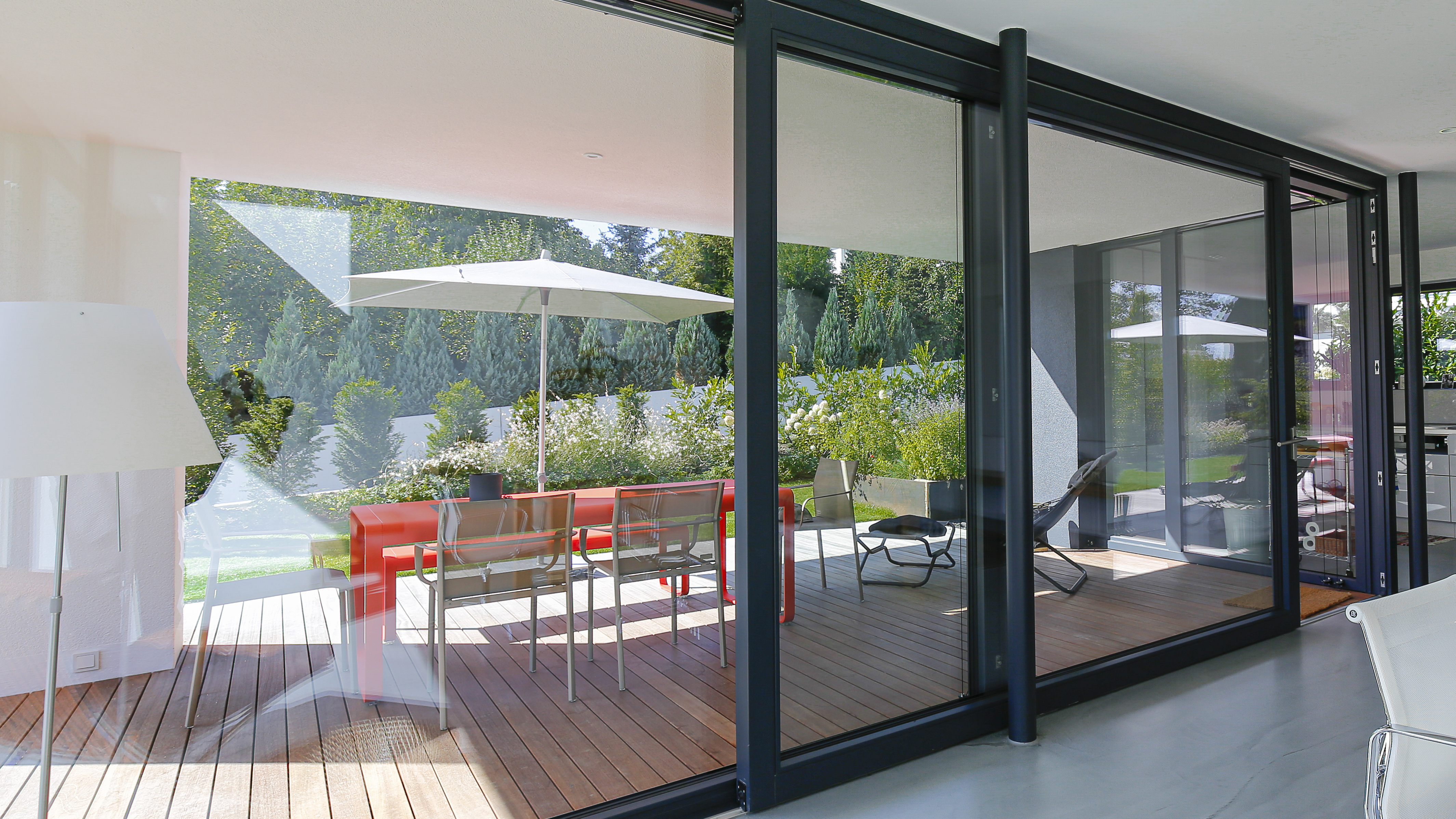 Passive Solarenergienutzung durch großzügige und hochwertige Dreifach-Verglasungen, die nach Süden und Westen ausgerichtet sind