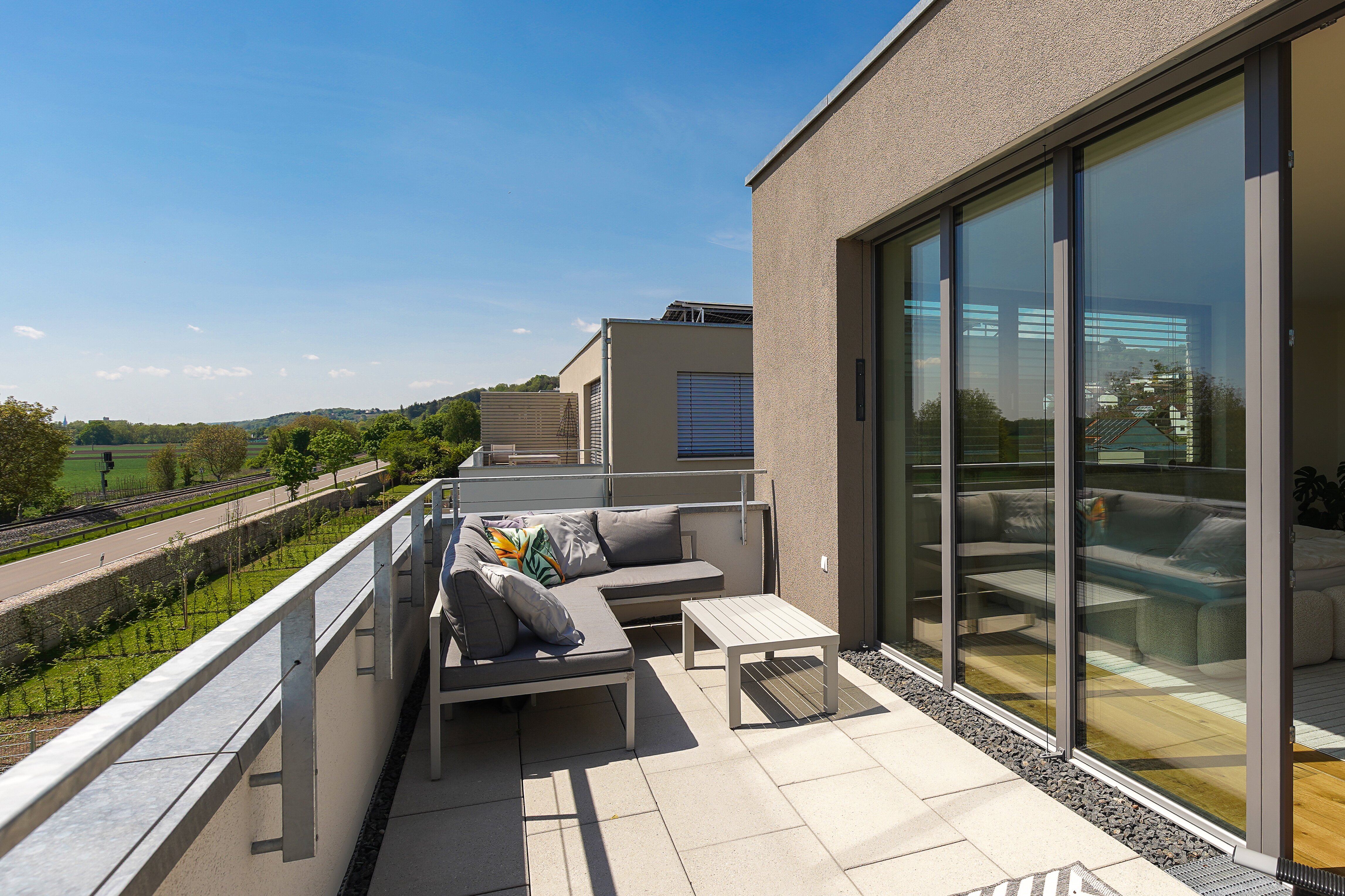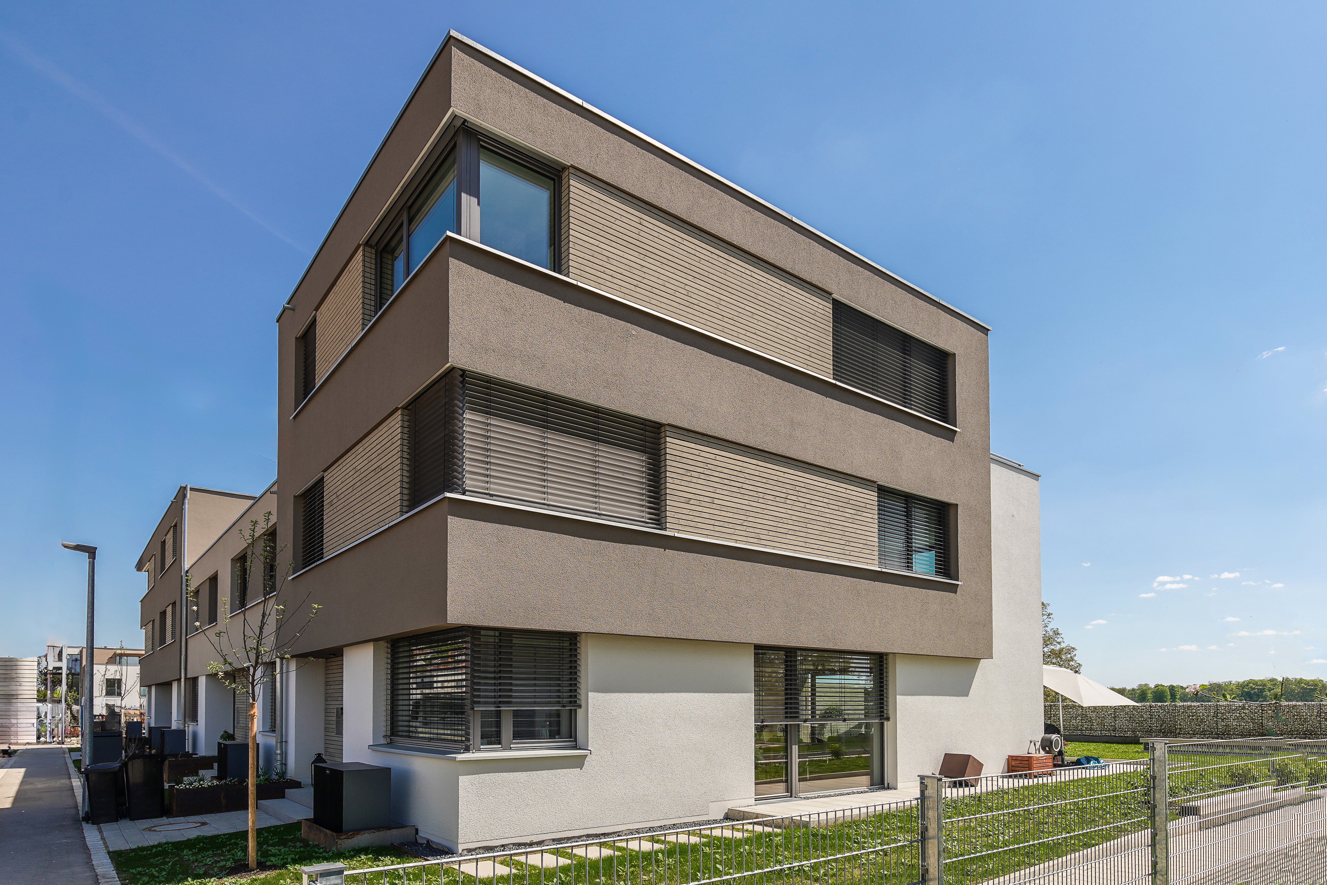 Außerdem verfügt jedes der Reihenhäuser über einen eigenen Garten sowie bei drei Geschossen zusätzlich über eine Dachterrasse.