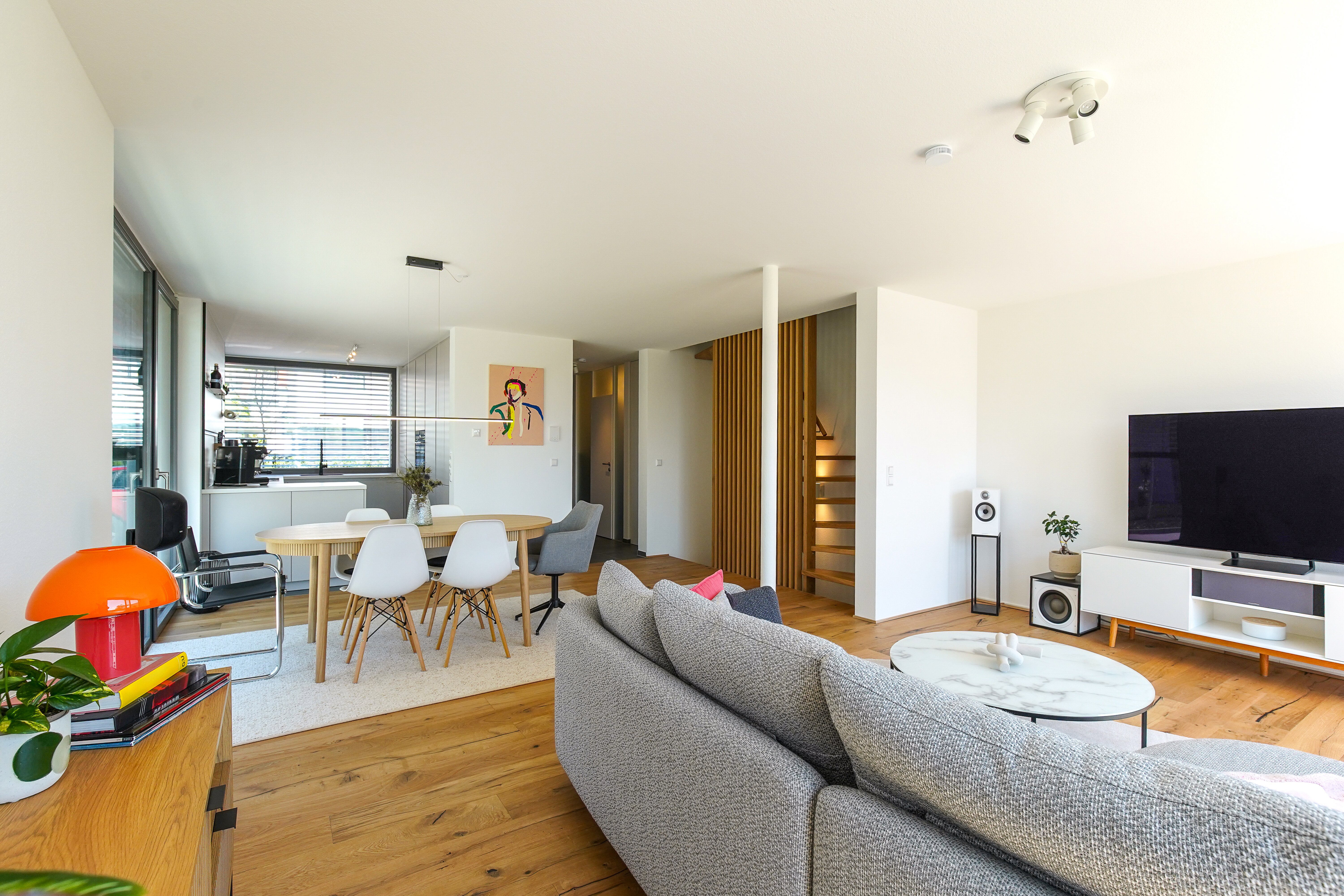 Ihre Fahrzeuge parken Sie bequem in der gemeinschaftlichen Tiefgarage mit direktem Zugang ins Untergeschoss des Reihenhauses.