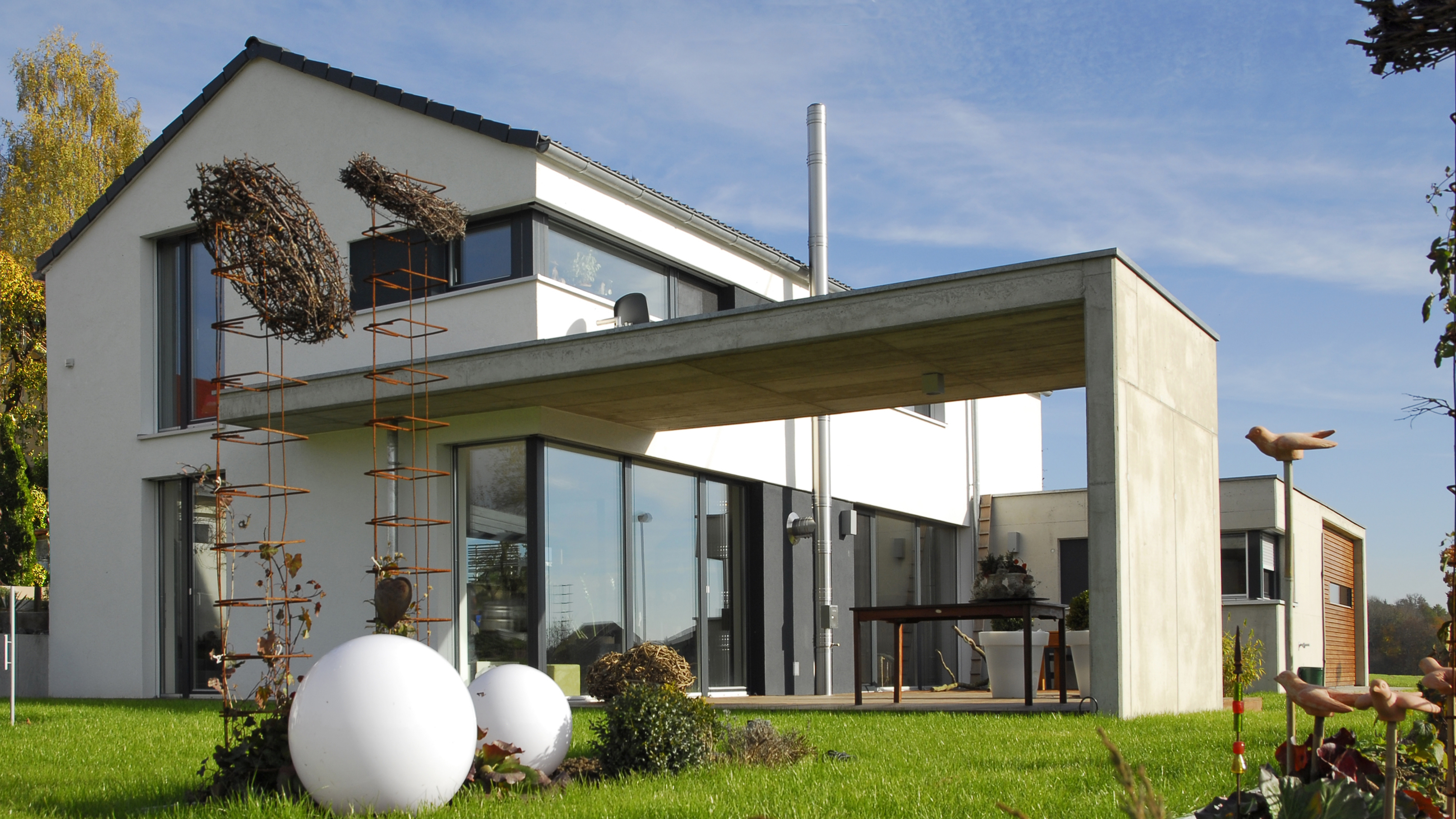 Eine Wärmepumpe in Verbindung mit Betonkernaktivierung sorgt Winter wie Sommer für ein angenehmes Raumklima